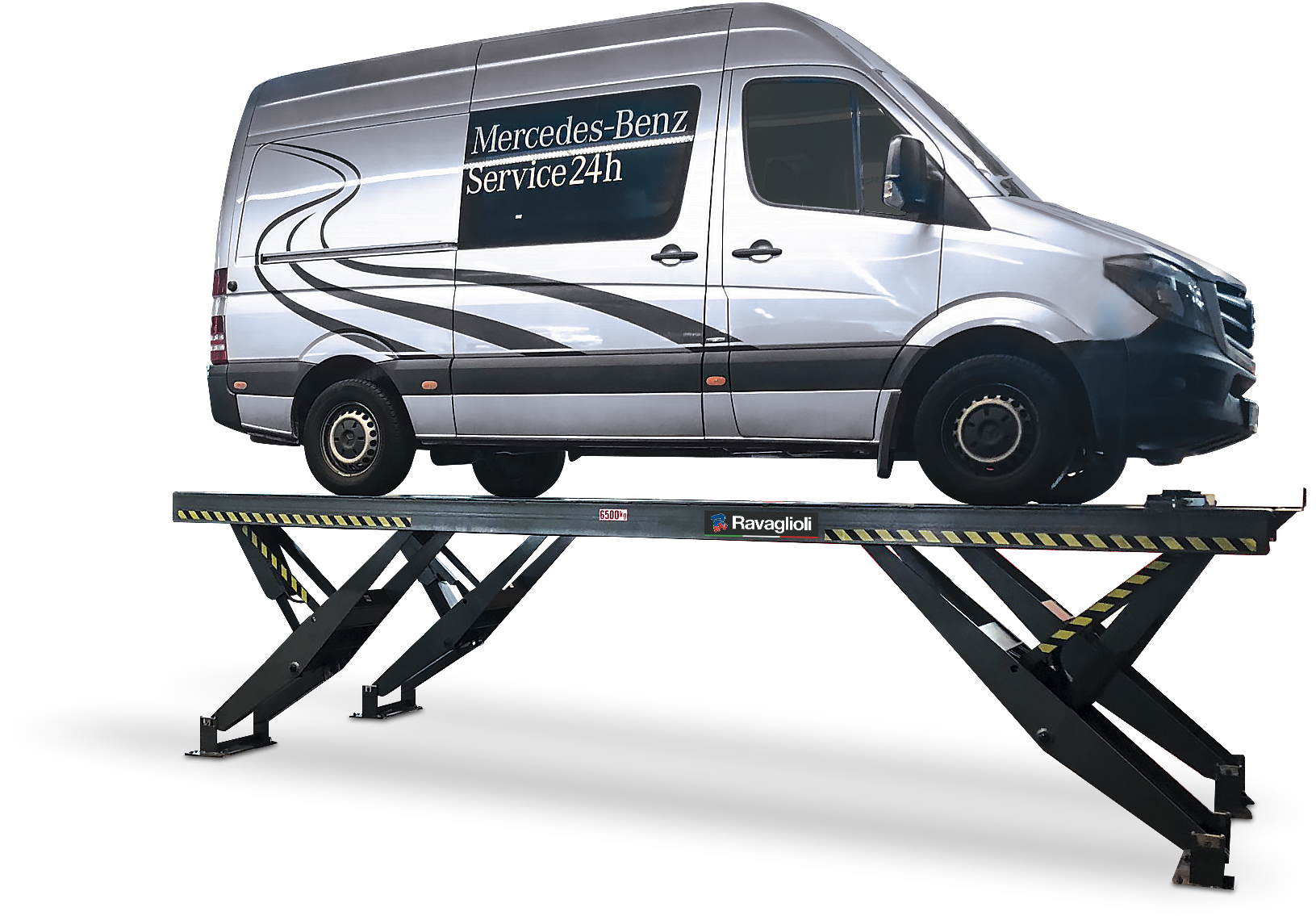 5,5 т, электрогидравлический, длина платформы 5400 мм, с защелкой безопасности и выравнивания колес, ниже уровня грунта
