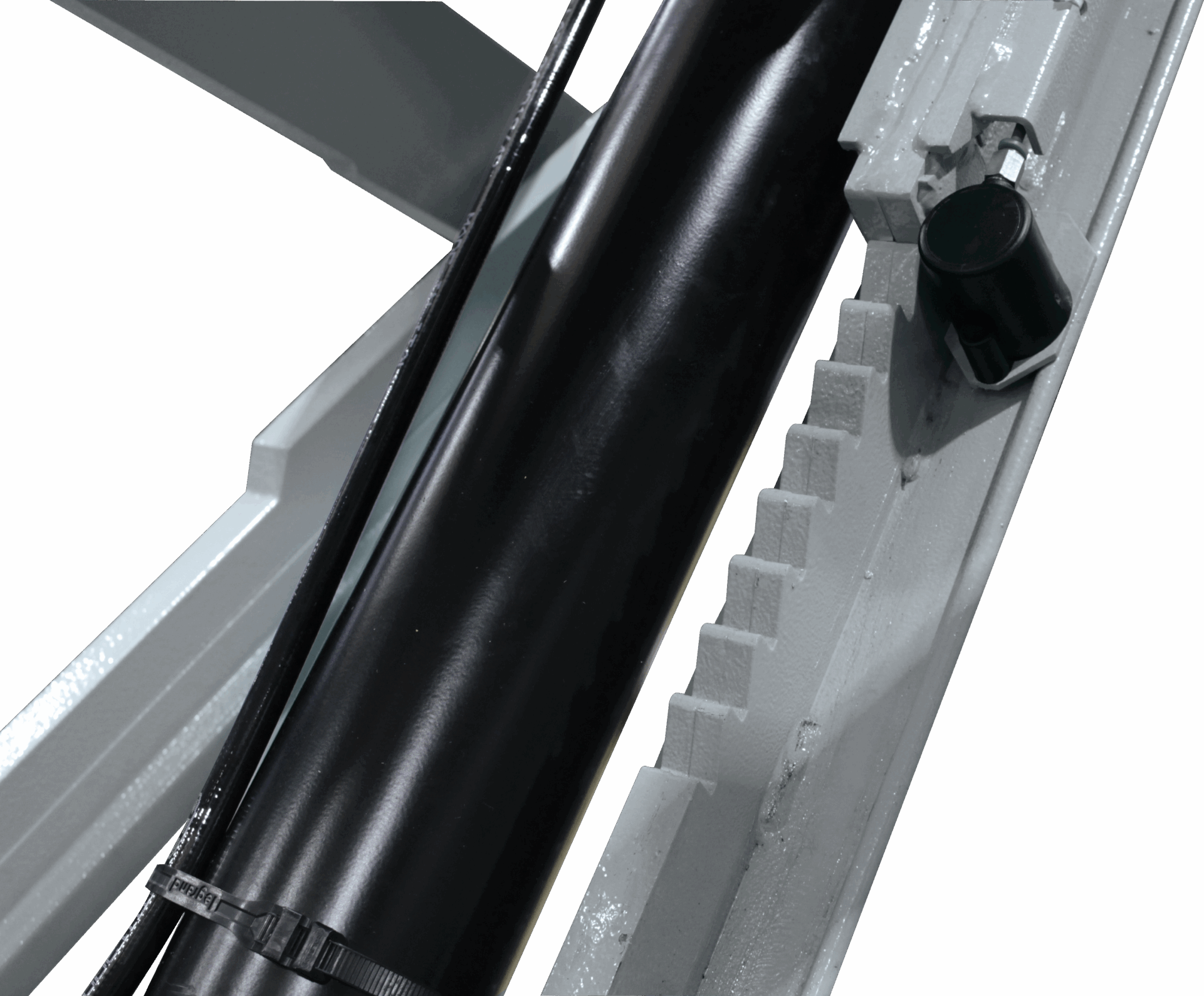 - Hydraulic levelling system by means of a patented synchronisation device assures constantly levelled lifting platforms regardless of weight distribution