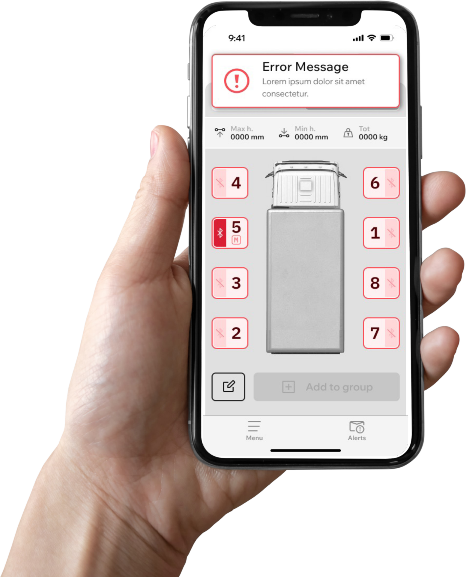 • Innovative features: Each column has identifying numbering and a LED indicator that shows column operation in real time. All information on the column’s state can be checked directly on the App.