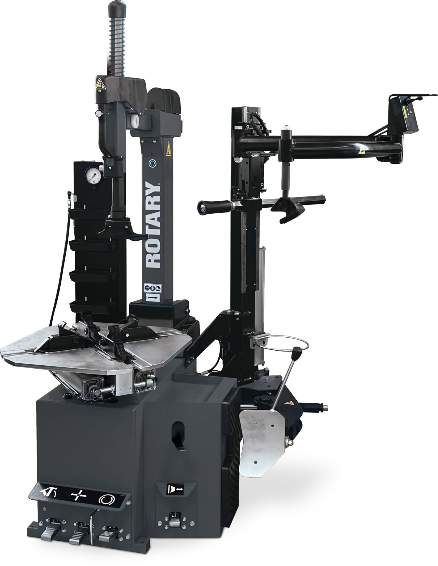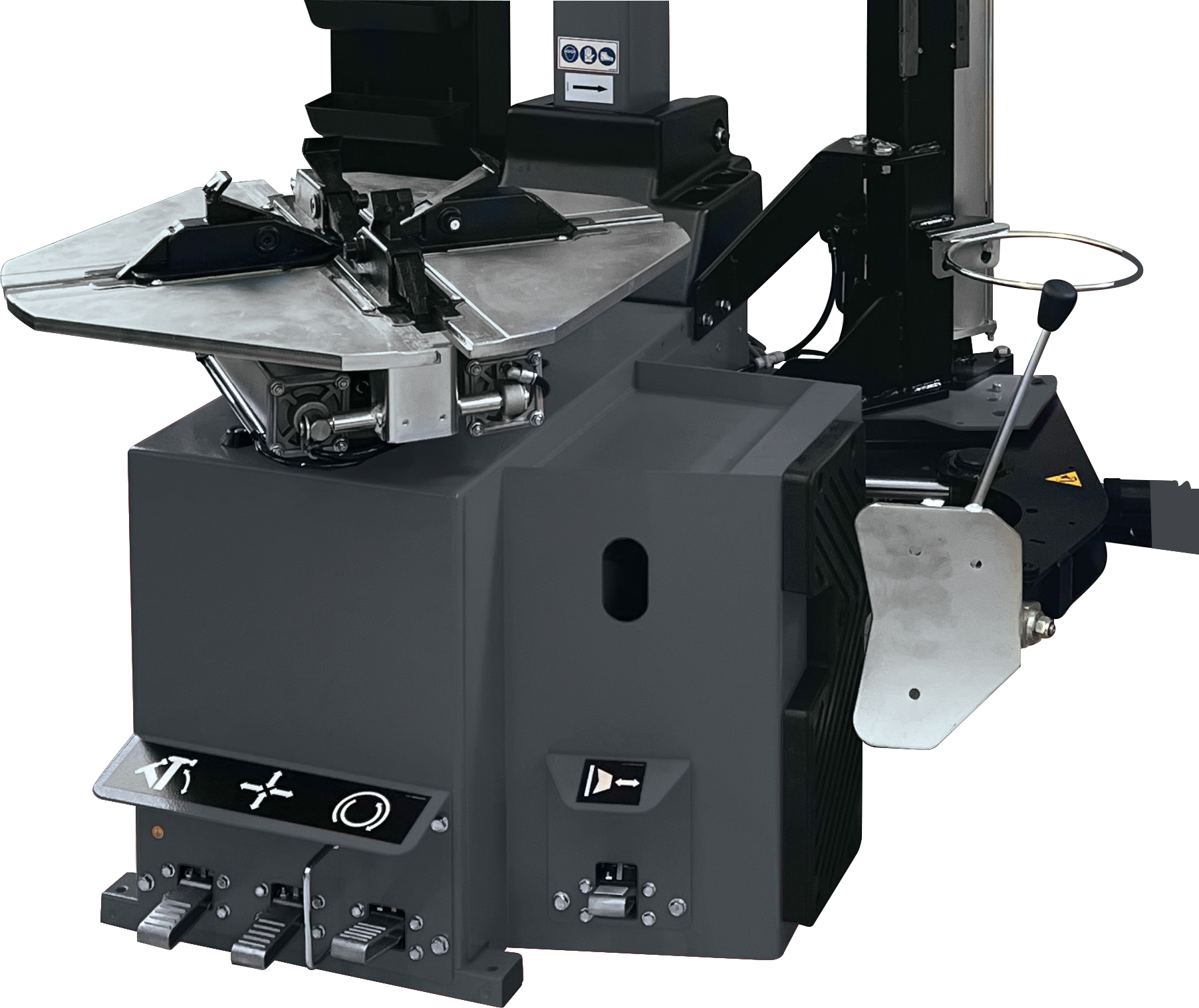 Démonte-pneus Automatique avec colonne basculante, plateau avec griffes réglables, capacité max 26’’, tête de montage en composite, dispositif pousse-talon, largeur de jante max. 16″, diamètre de roue max. 45″ | Uniquement disponible pour marché DACH